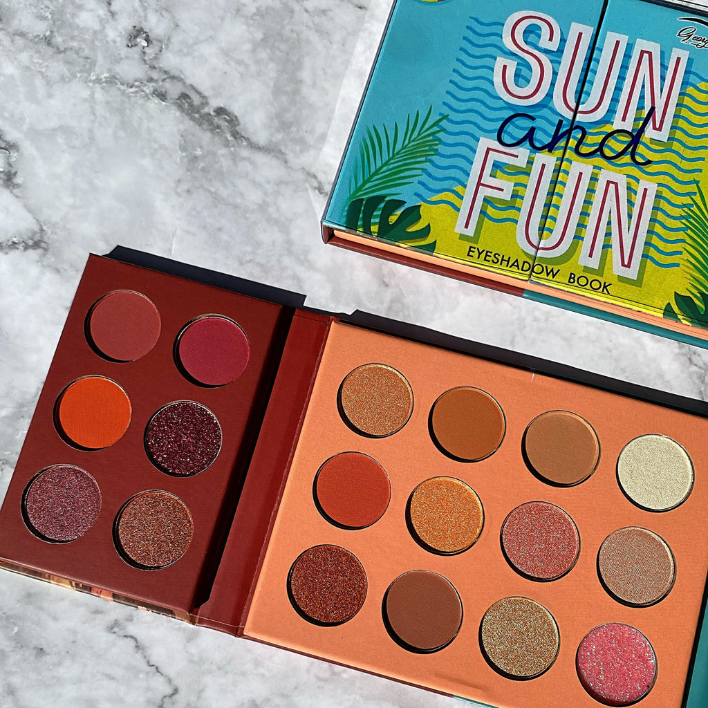 Create a deep smokey eye look with the purple shades, an Electric blue look or add a hot yellow to your lids to pop out your tan! It’s book-like desi...